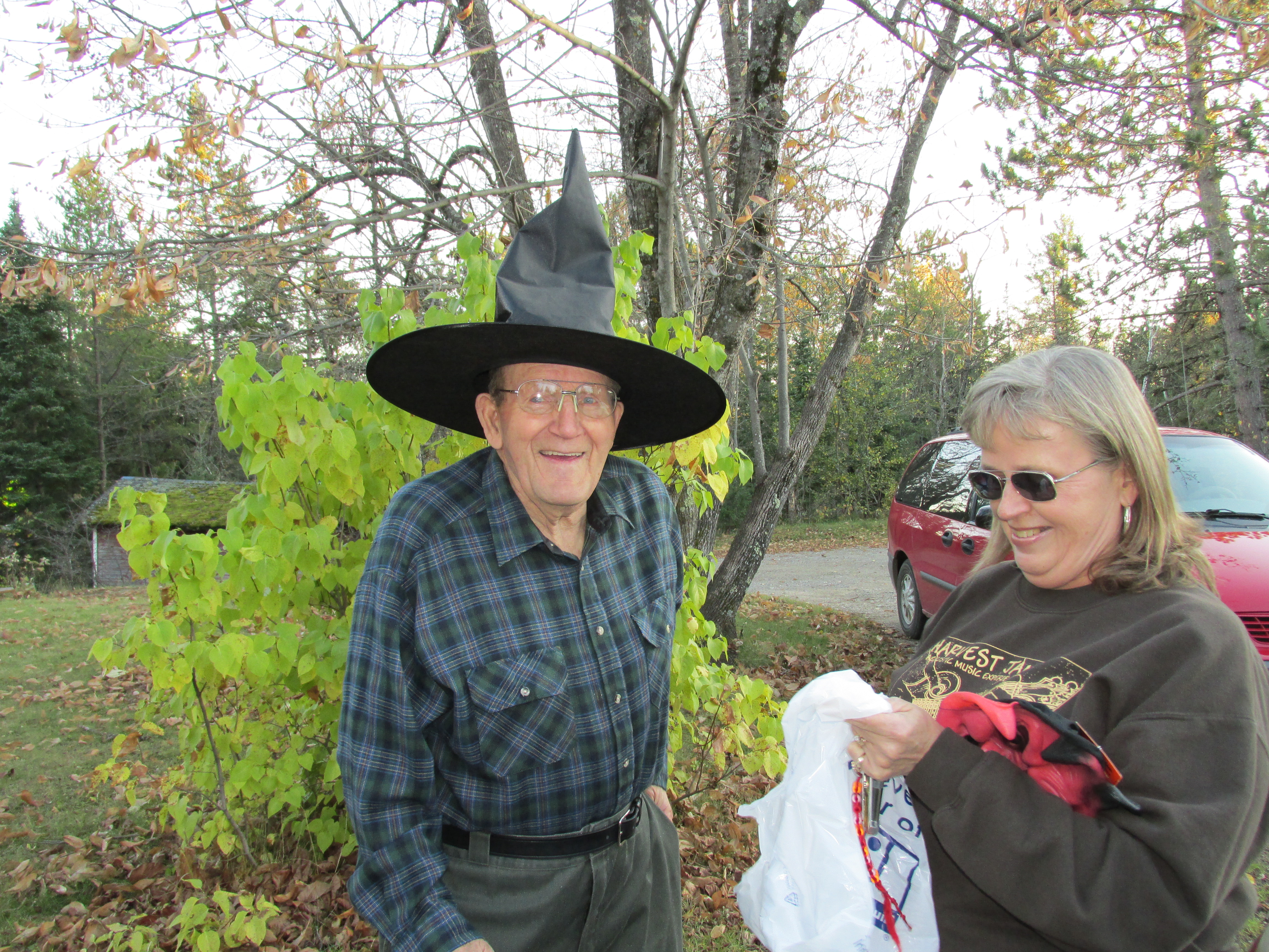 And then Mama Sharon and Papa Willard stopped by!! He told us black bears can sprint up to 30 mph, so we kept our distance and he modeled his new hat. 🙂