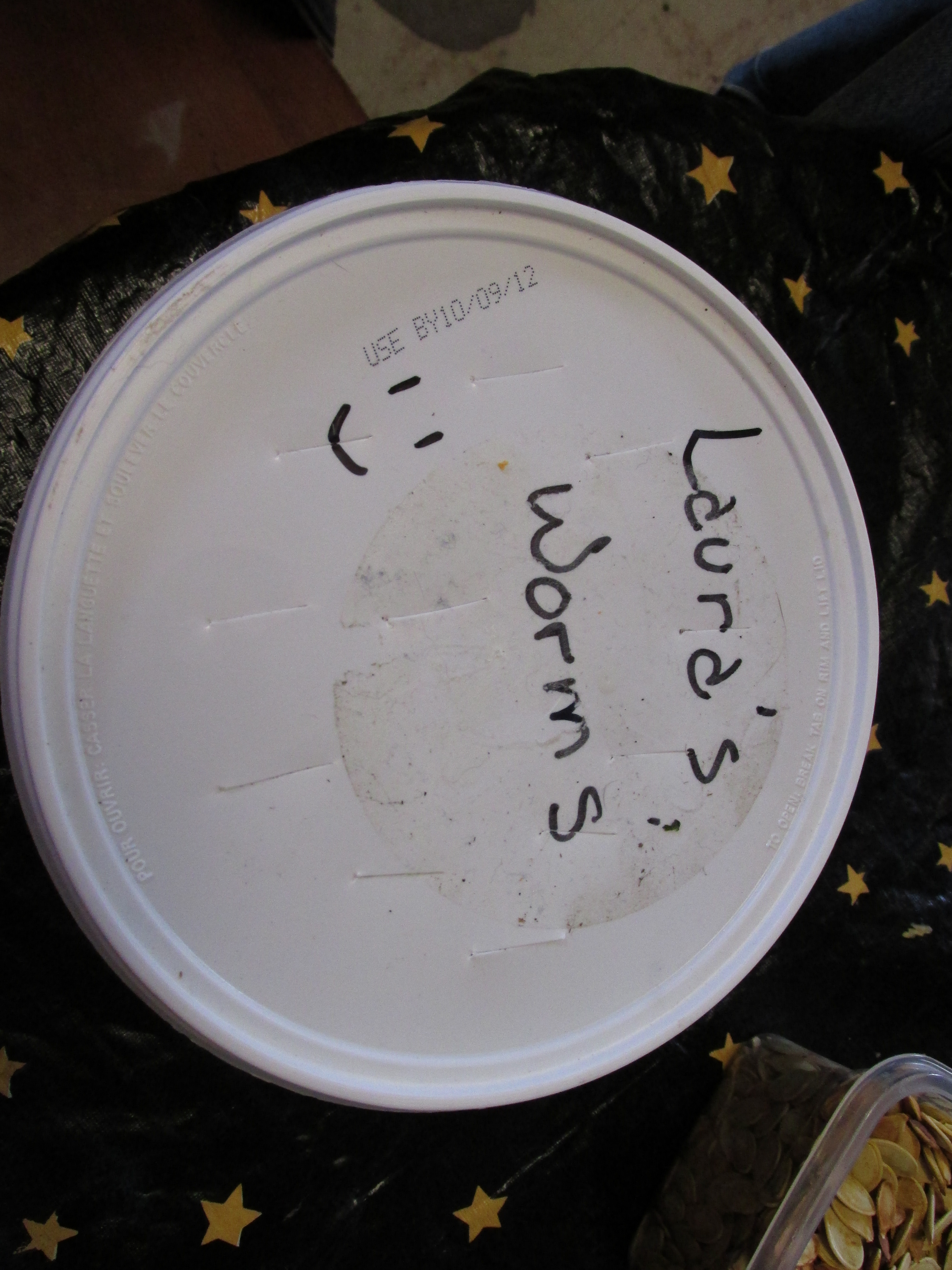 I am so excited to have worms again! I can make dirt and super fertilizer all winter. Also, I eat better (more fruits and veggies) and my fridge is cleaner because I am always looking for more worm food. And Mr. Clean (aka Mr. Wonderful) doesn’t even mind that they’re inside. Much. 🙂