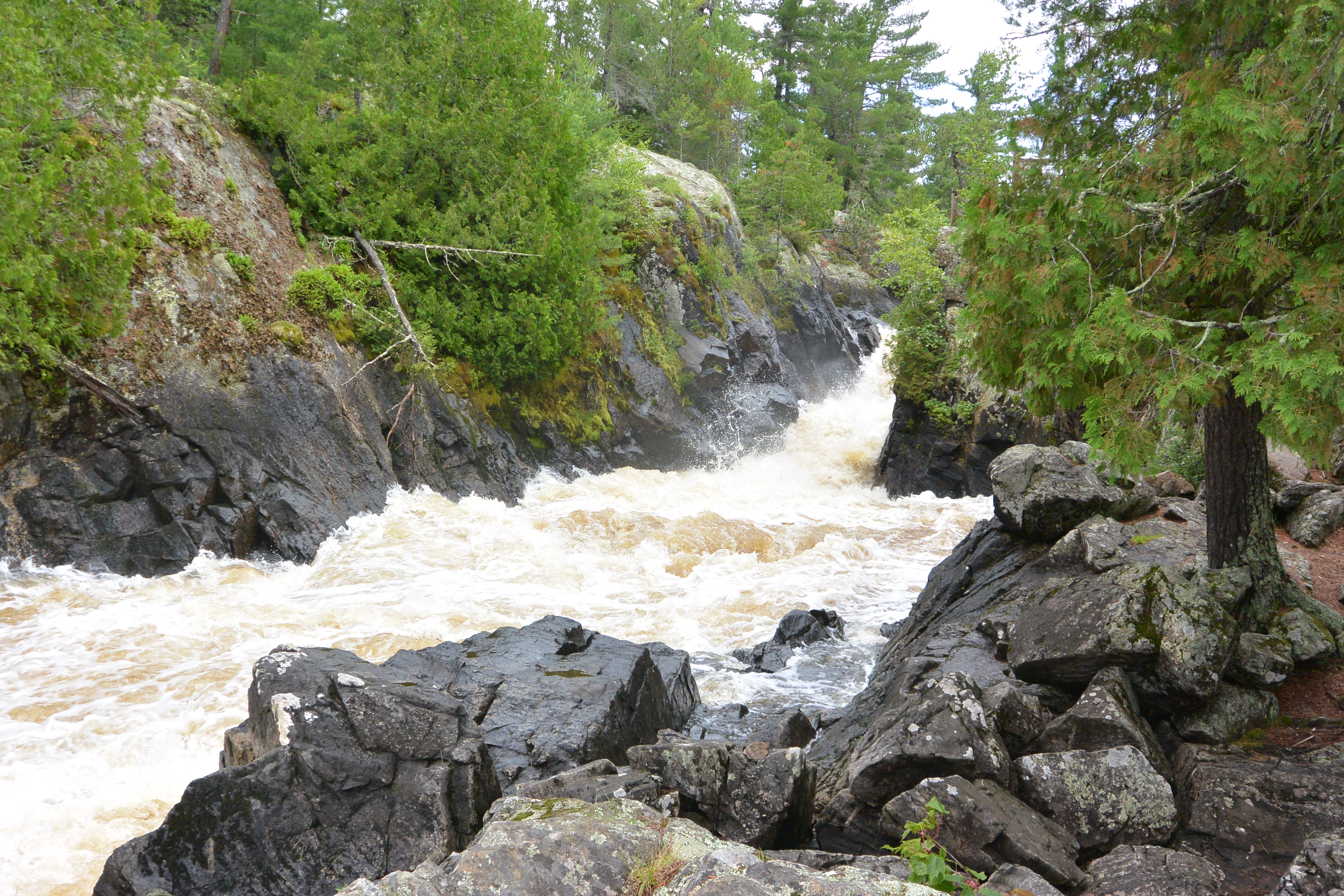On Sunday July 6, Mr. Wonderful, Male Spawn, and I took a day trip to the Vermilion Falls and Vermilion Gorge hiking trails. Northern MN has been getting a lot of rain and so I hoped there would be lots of photo opportunities. The weather didn’t cooperate, but the wildlife did!