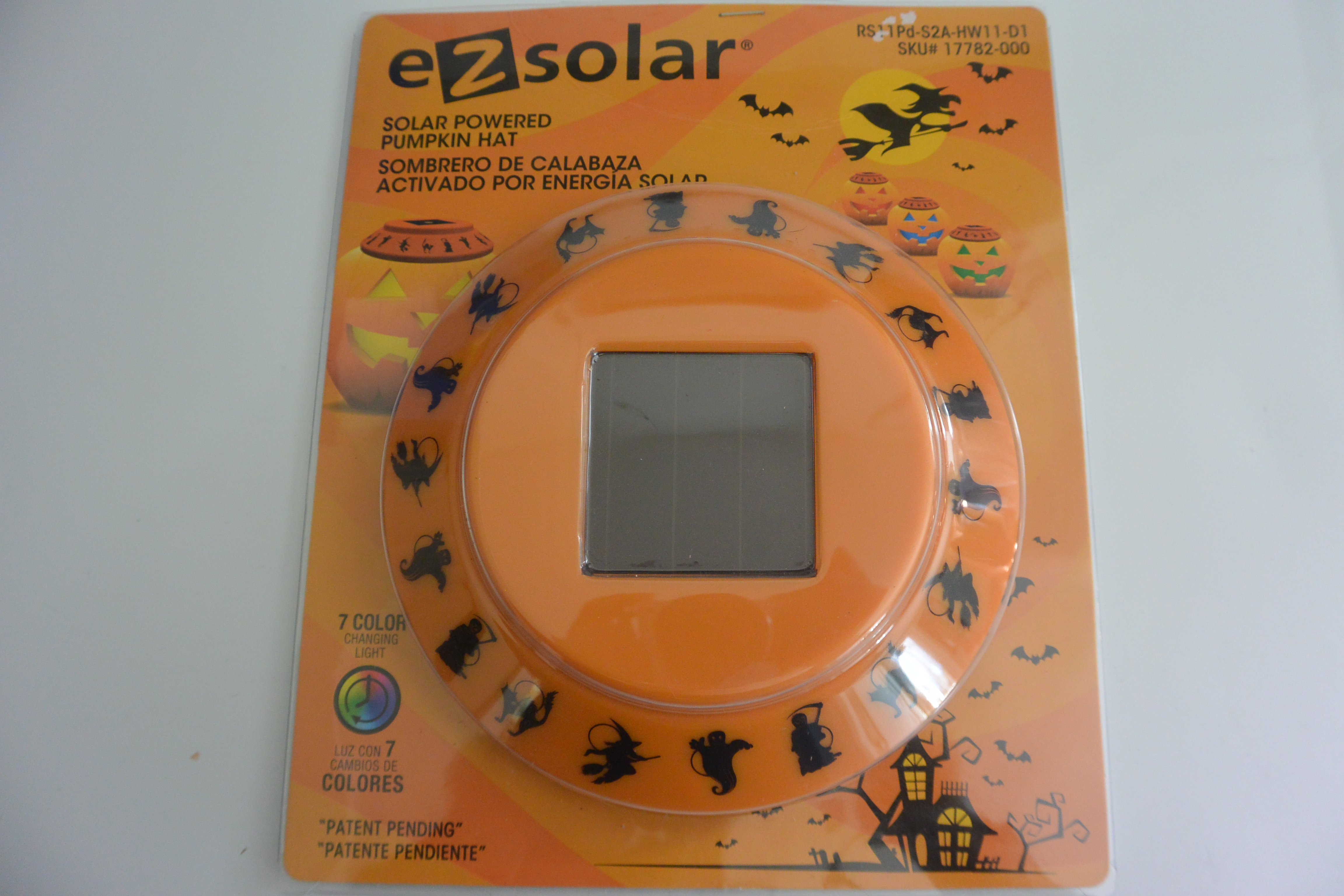 Now here is the genius part: Solar garden lights will work, depending on their size and the diameter of the hole in your mold, but this Halloween, I found these awesome solar-powered jack-o-lantern lights at K-mart for $5. They change color, so I didn’t have to add food coloring to the water to color the ice!